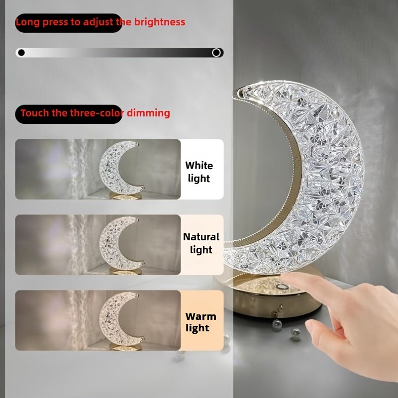 One Rechargeable Crystal Table Lamp Featuring a Moon And Star Design, This Dimmable Touch Lamp for The Bedroom Offers Three Color Options (Short Press to Switch Colors – Moon